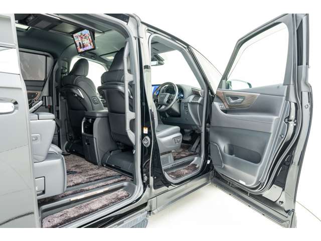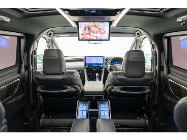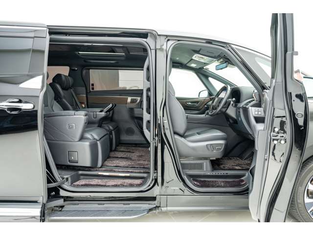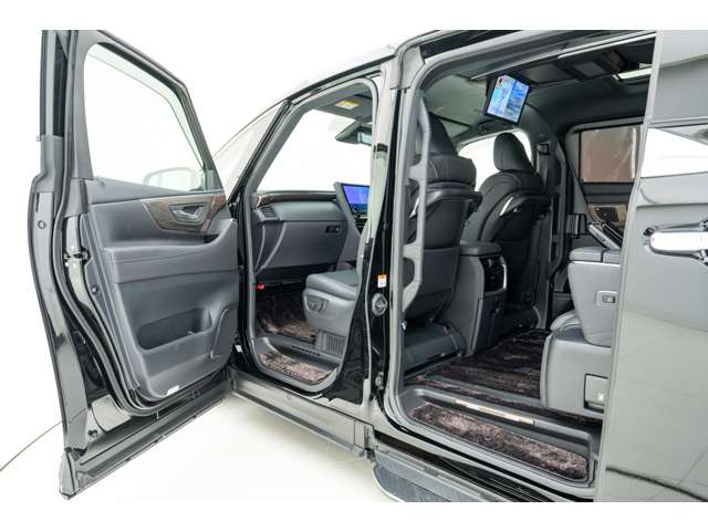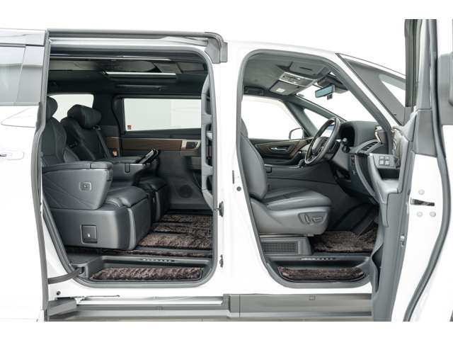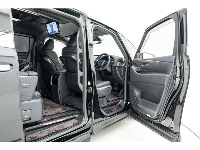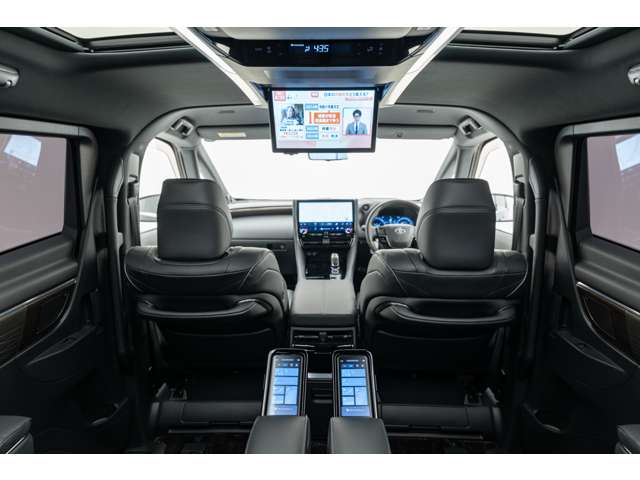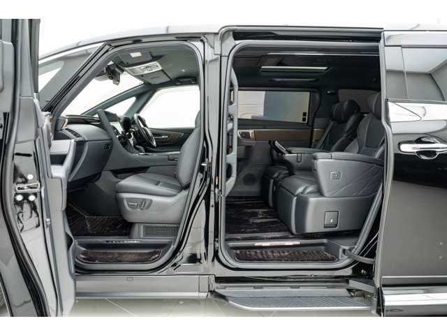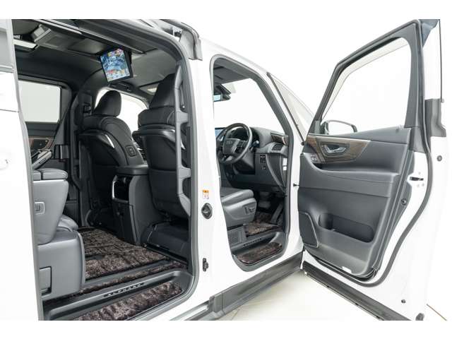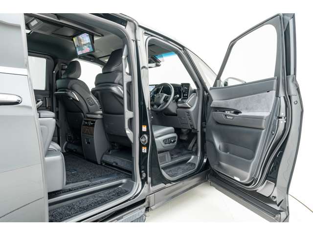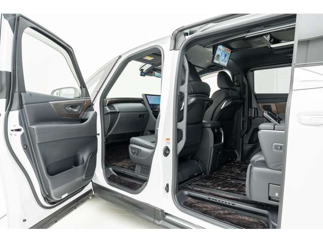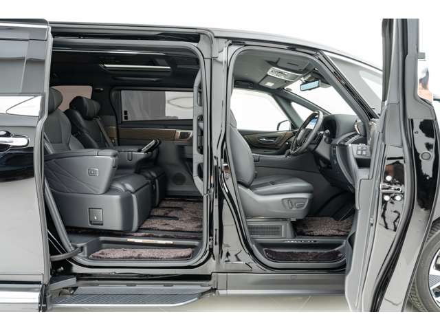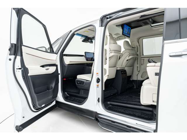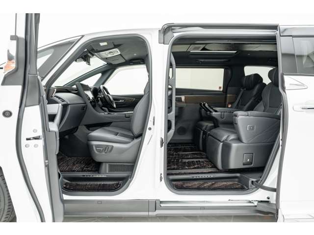 ホワイトインテリア 寒冷地仕様 純正ドライブレコーダー(前後方) フロアマット&エントランスマットセット マークレビンソンサウンド 14インチリアエンターテイメント ユニバーサルステップ 19インチAW グラファイトブラックガラスフレーク