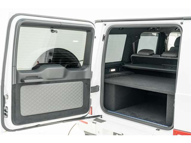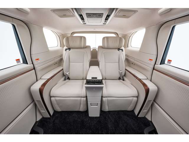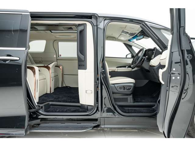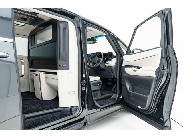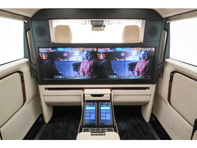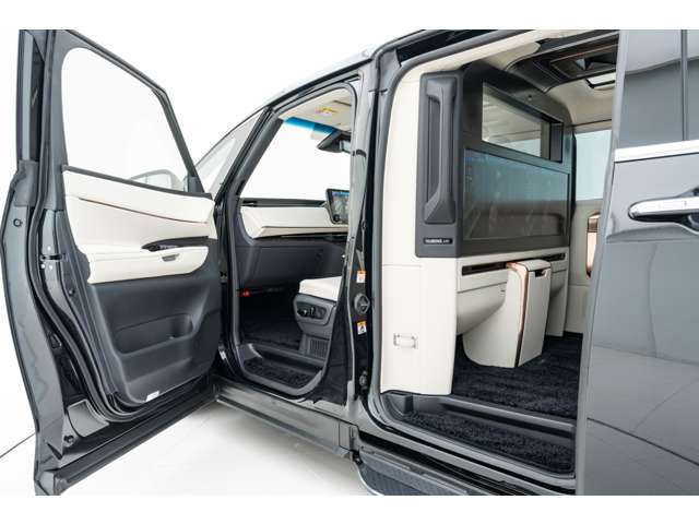 ホワイトインテリア 寒冷地仕様 純正ドライブレコーダー(前後方) 48インチ大型ワイドディスプレイ パーティション(電動昇降ガラス/調光機能付) 冷蔵庫 フロアマット&エントランスマットセット グラファイトブラックガラスフレーク