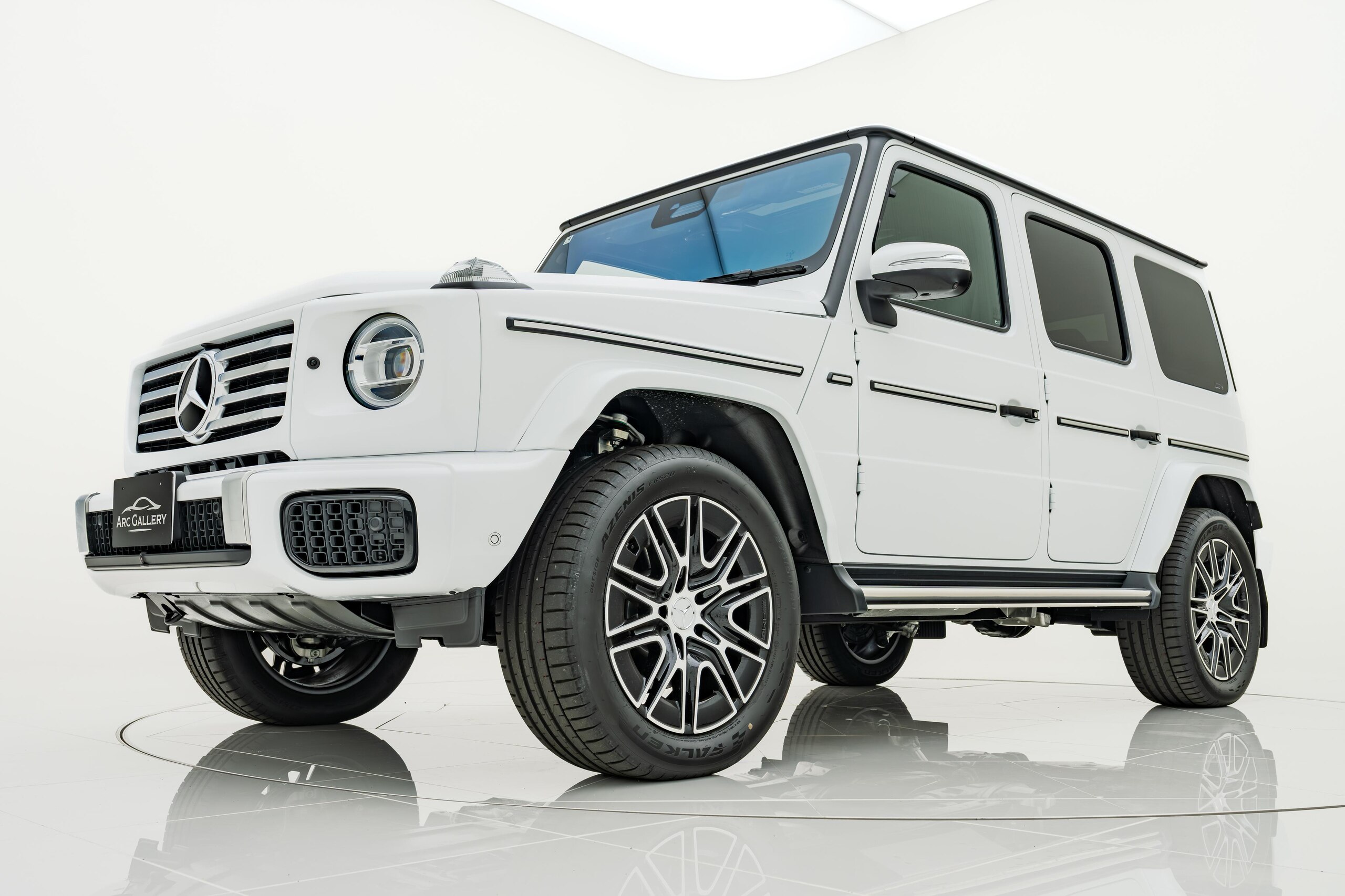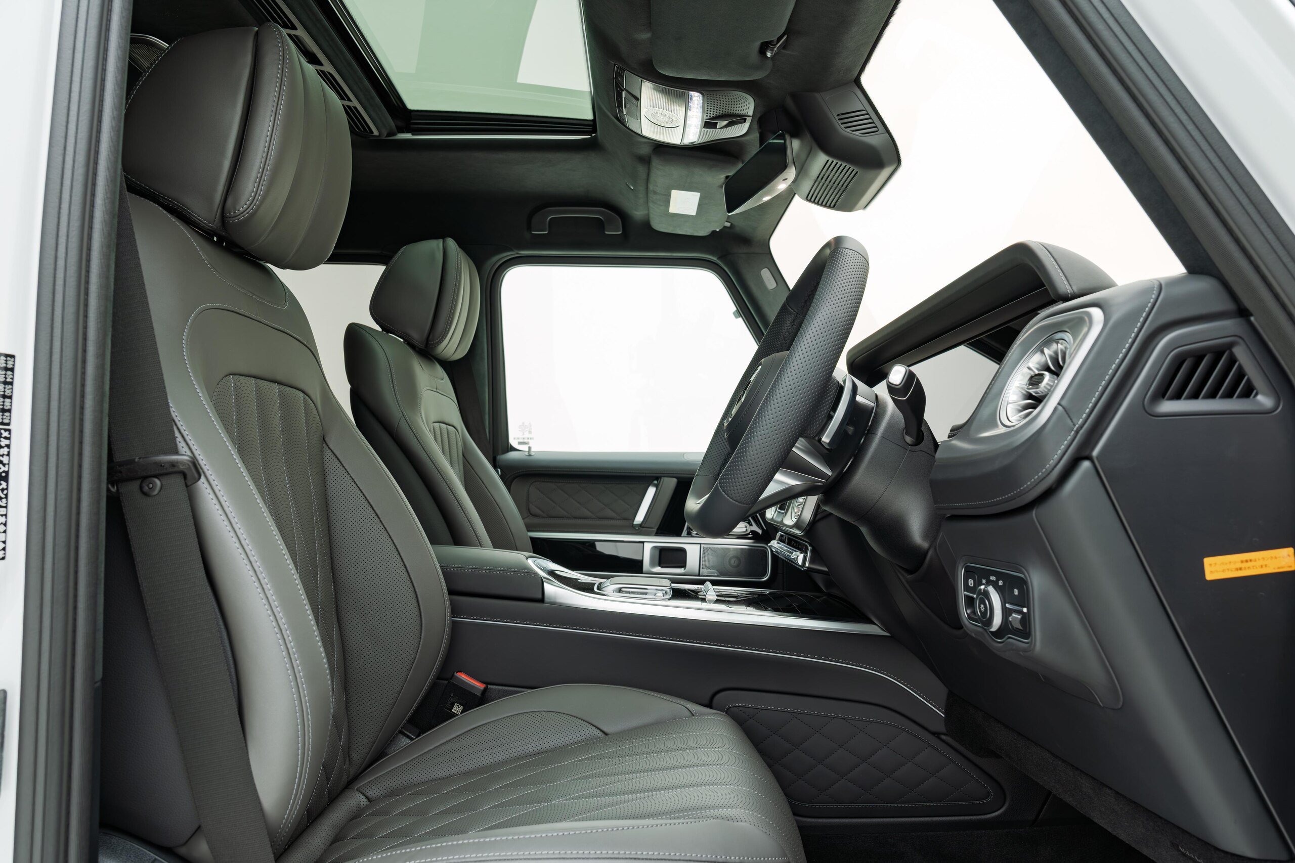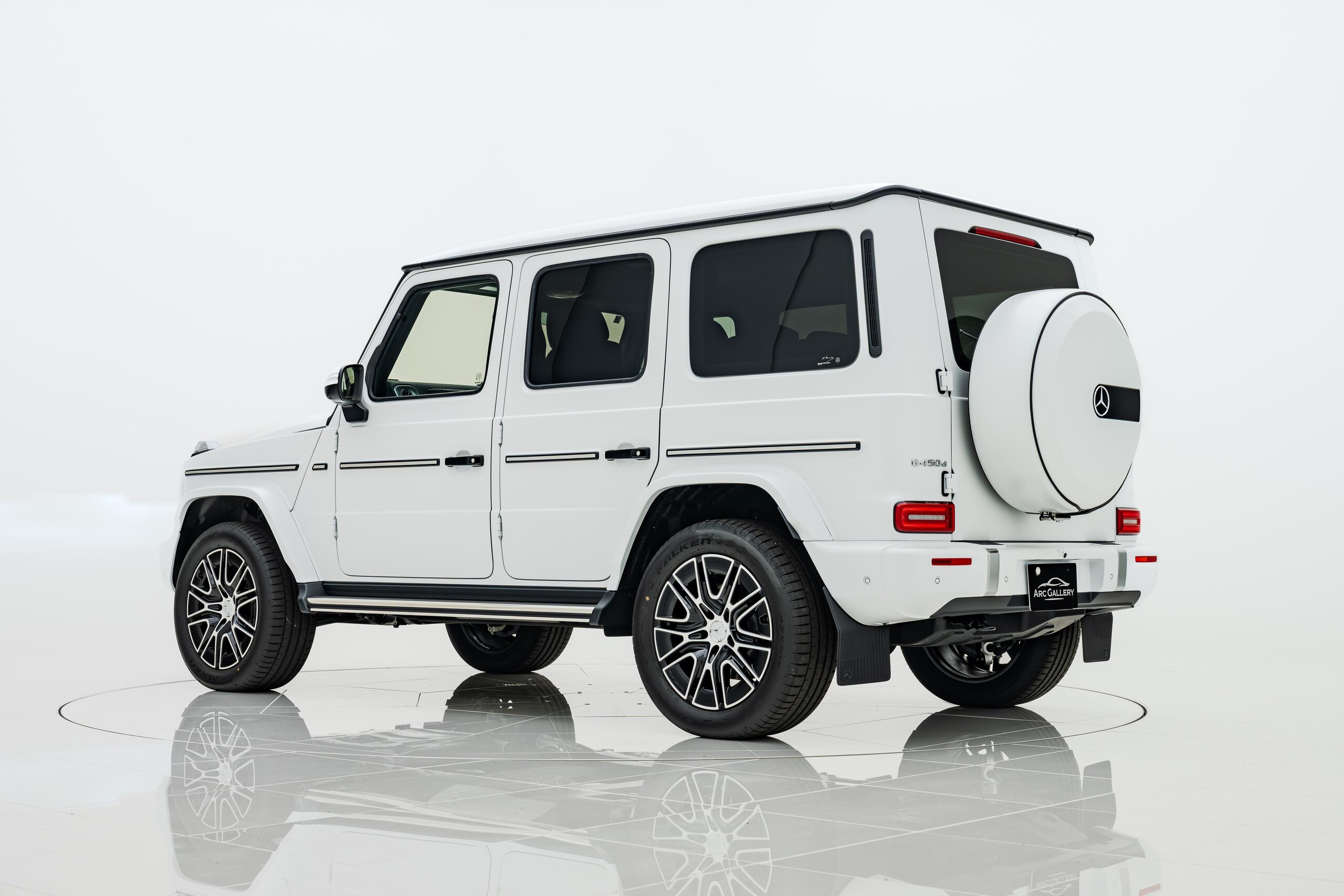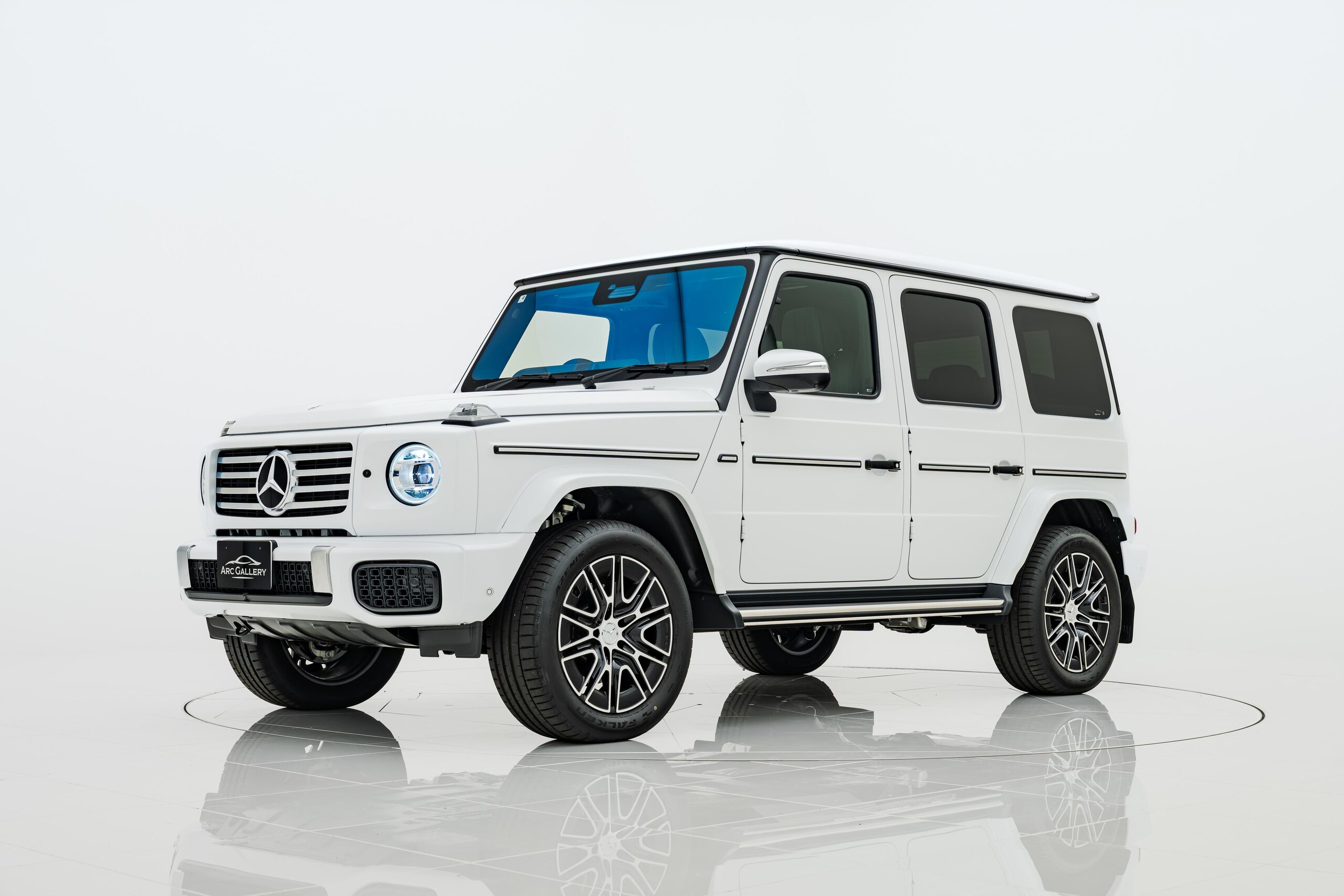 艶消しマットフィルム施工 マヌファクトゥーアプログラムプラス チタニウムグレーナッパレザーシート ボディ同色スペアタイヤリング ロゴパッケージ ブラックピアノラッカーウッド AMGフロアマットプレミアム オパリスホワイト(マットフィルム施工)