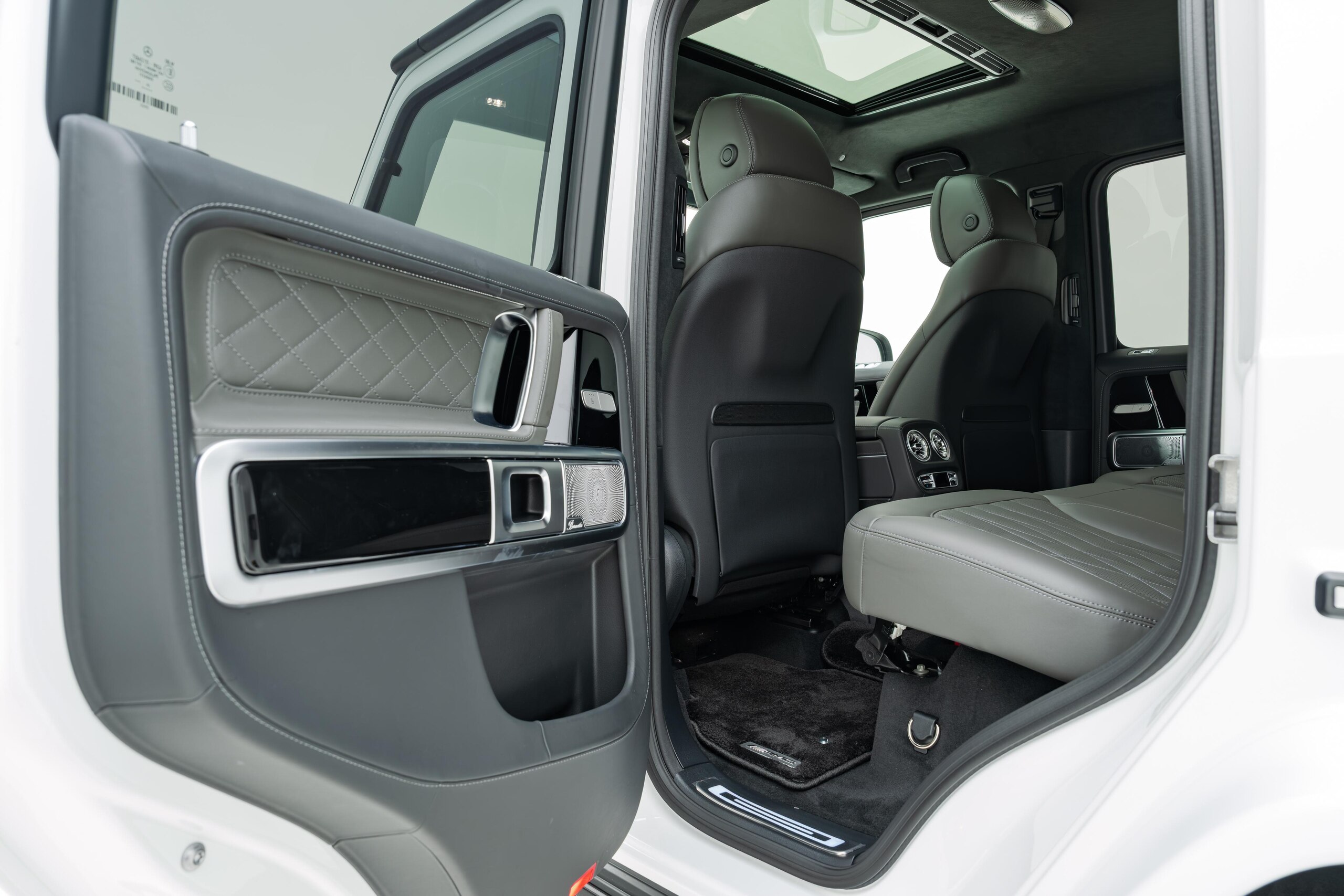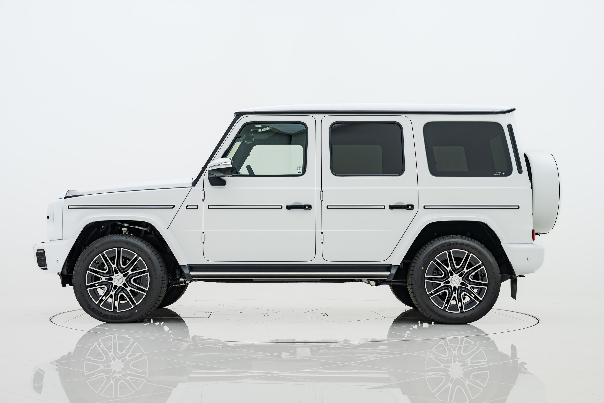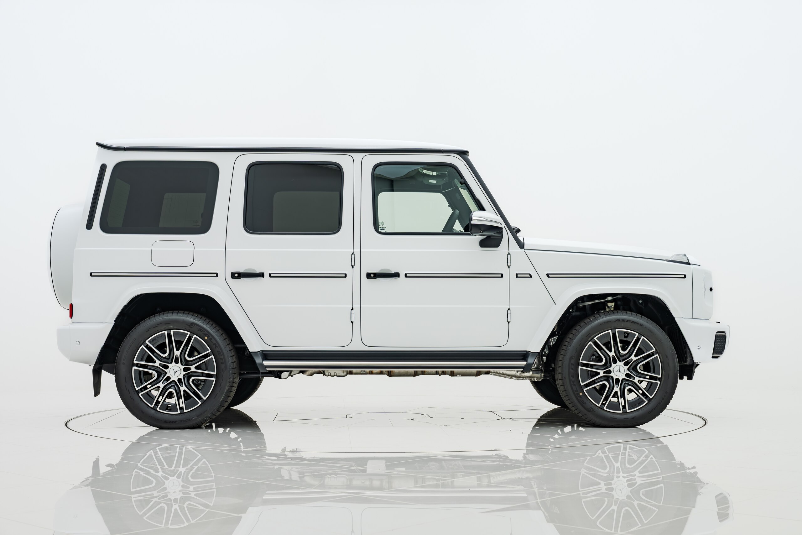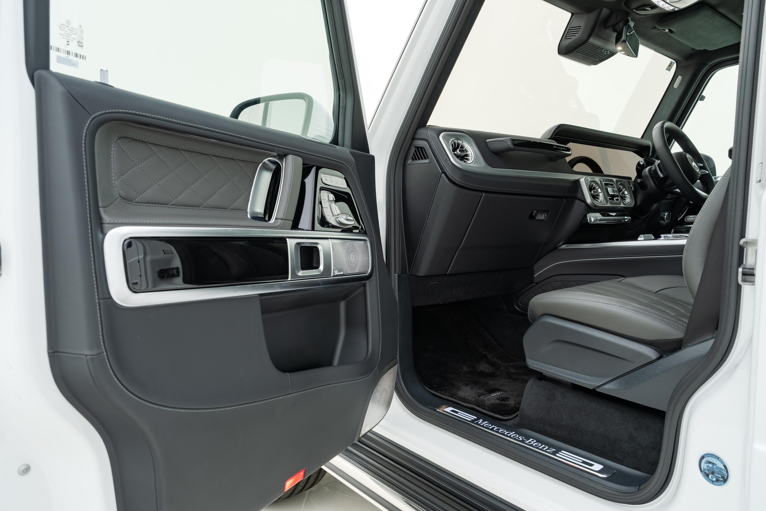 艶消しマットフィルム施工 マヌファクトゥーアプログラムプラス チタニウムグレーナッパレザーシート ボディ同色スペアタイヤリング ロゴパッケージ ブラックピアノラッカーウッド AMGフロアマットプレミアム オパリスホワイト(マットフィルム施工)
