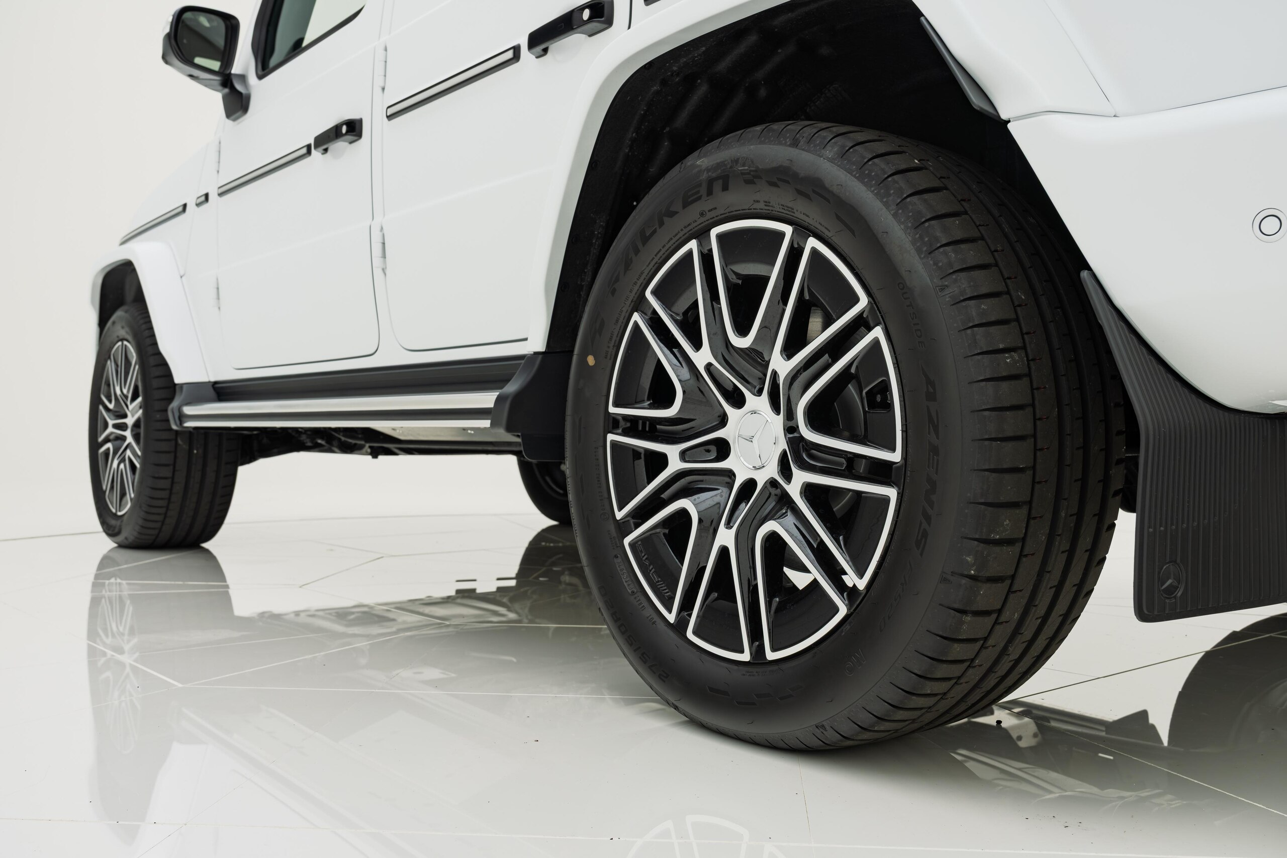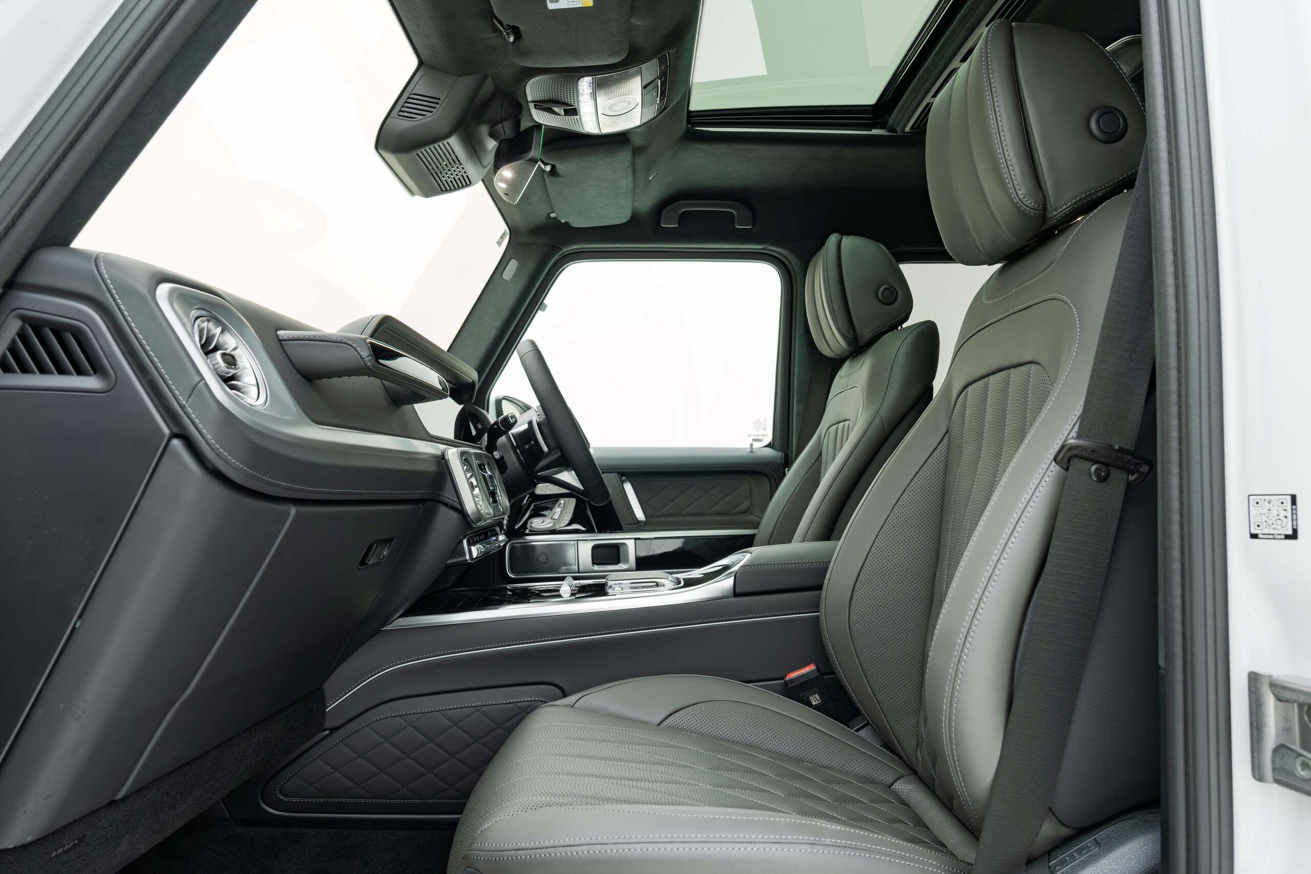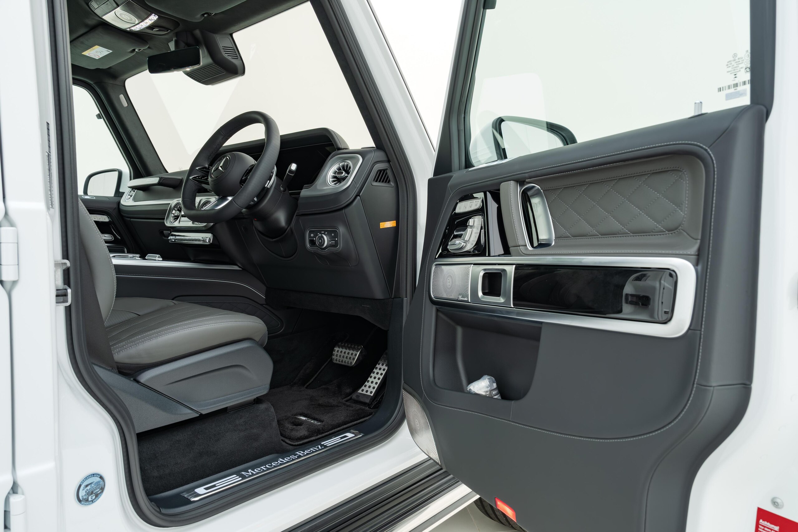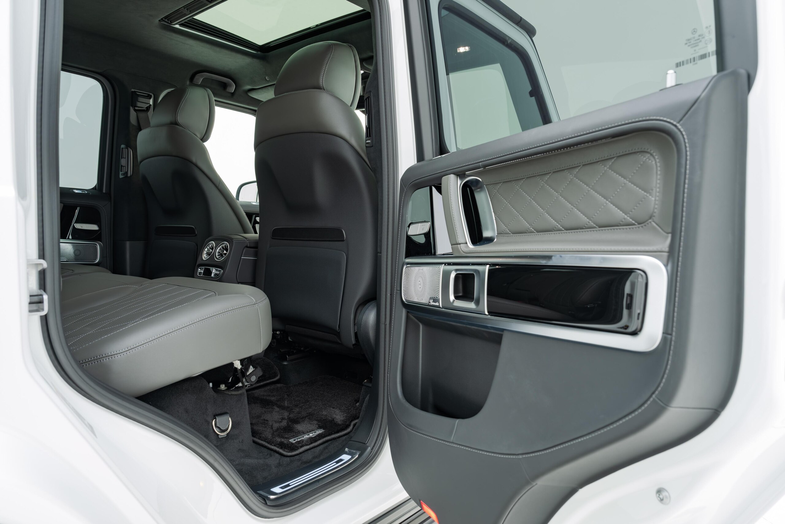 艶消しマットフィルム施工 マヌファクトゥーアプログラムプラス チタニウムグレーナッパレザーシート ボディ同色スペアタイヤリング ロゴパッケージ ブラックピアノラッカーウッド AMGフロアマットプレミアム オパリスホワイト(マットフィルム施工)