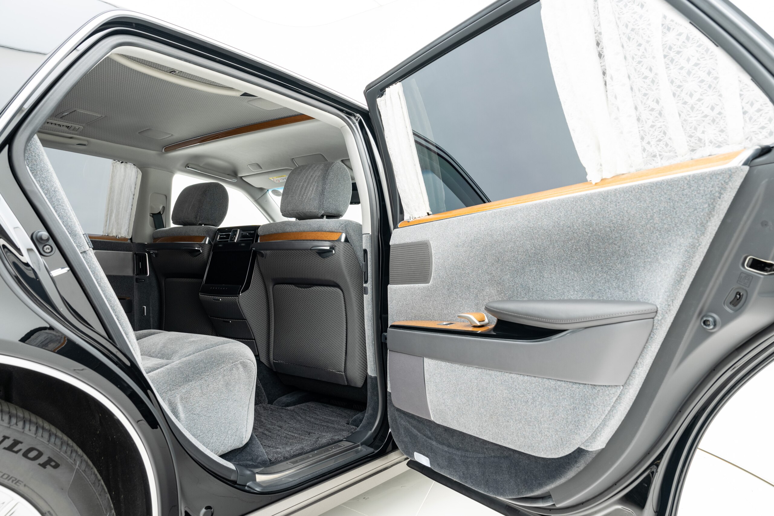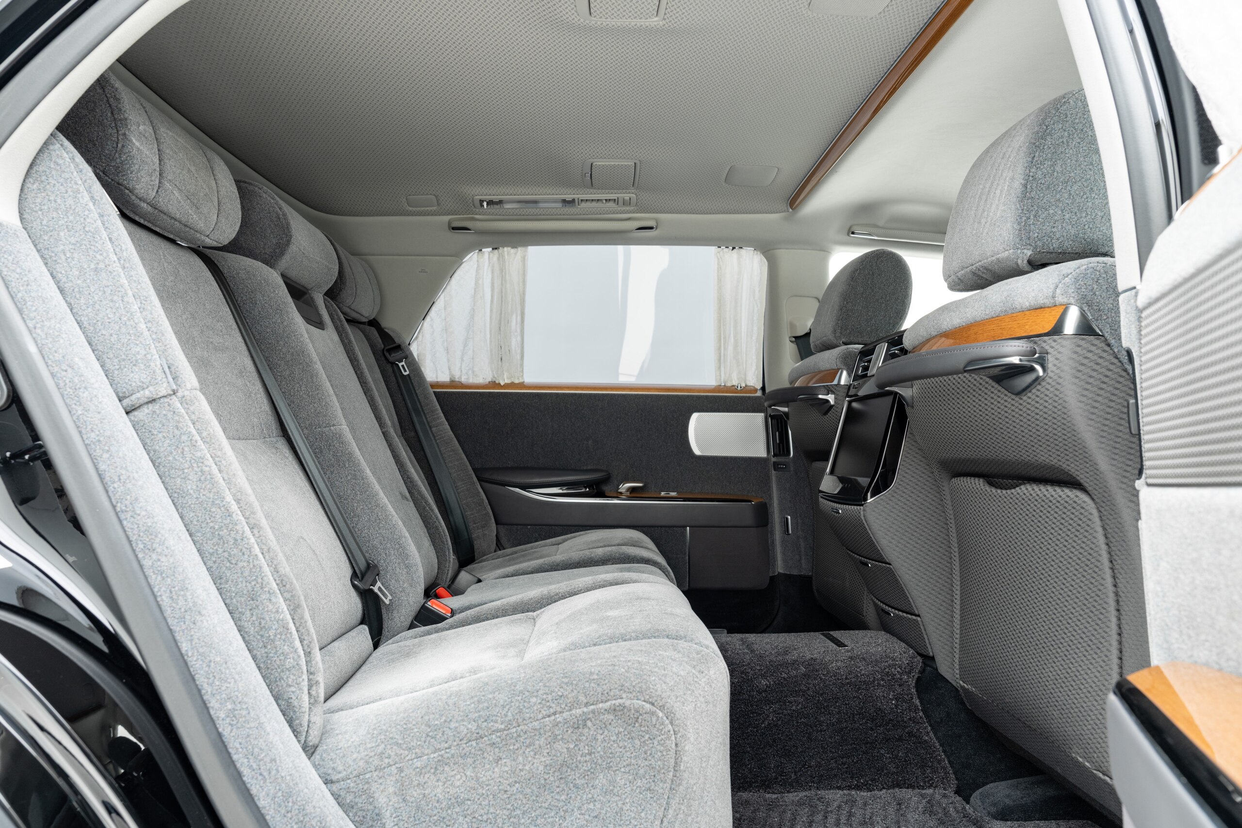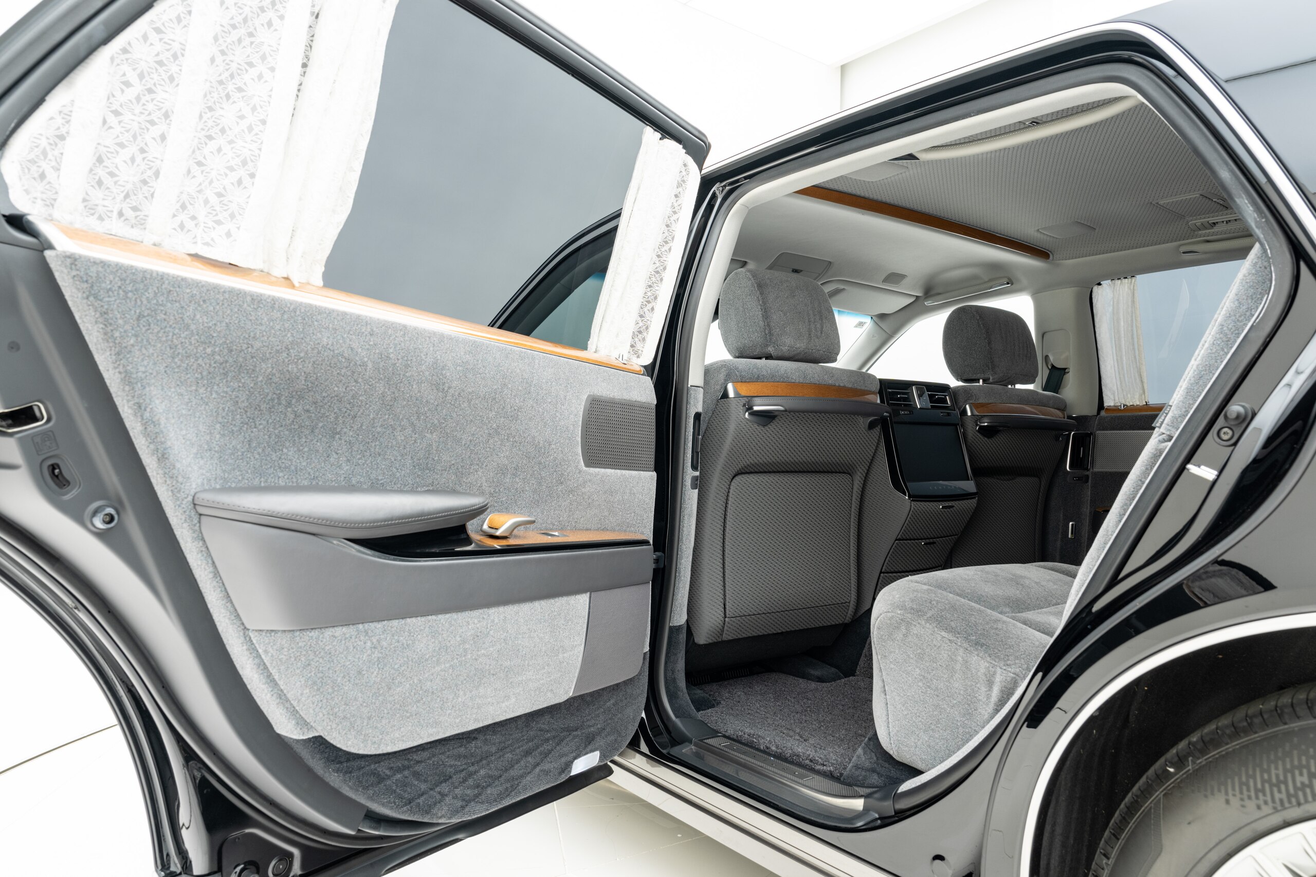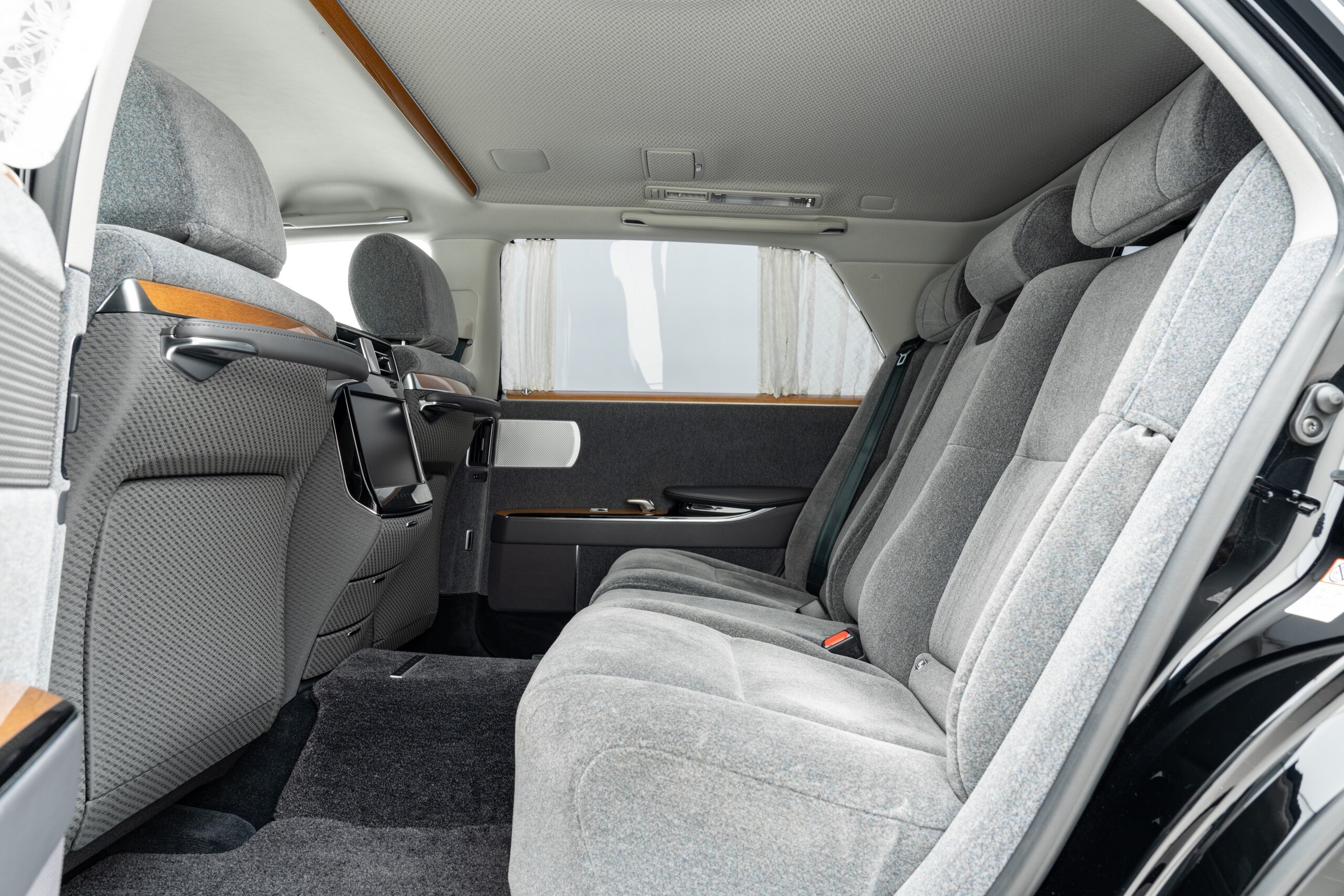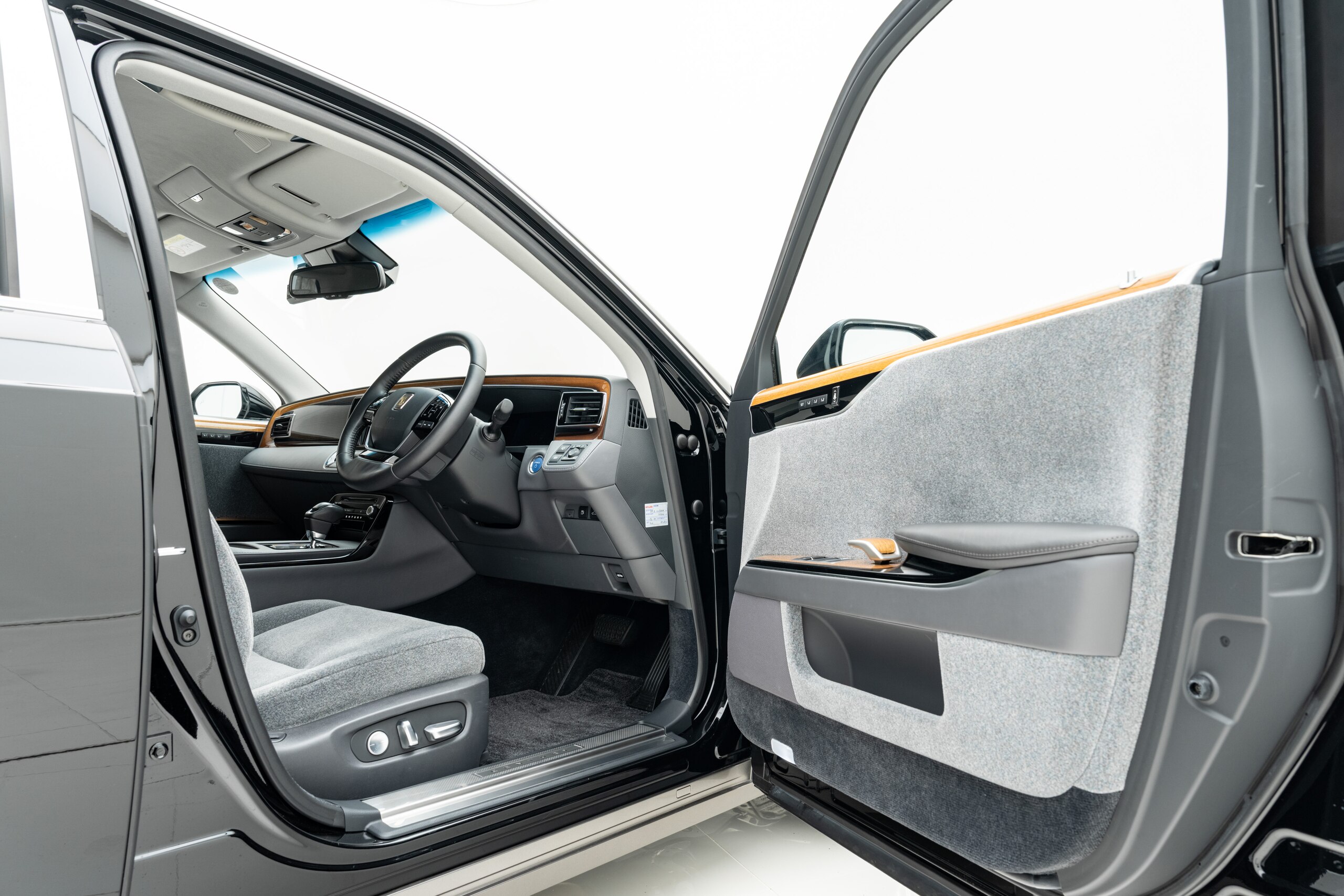 ウールファブリック仕様(グレー) 電動式バックウィンドウカーテン フロアマット(プレステージタイプ) 純正フェンダーポール 3カメラドライブレコーダー(TZ-DR301) 神威エターナルブラック