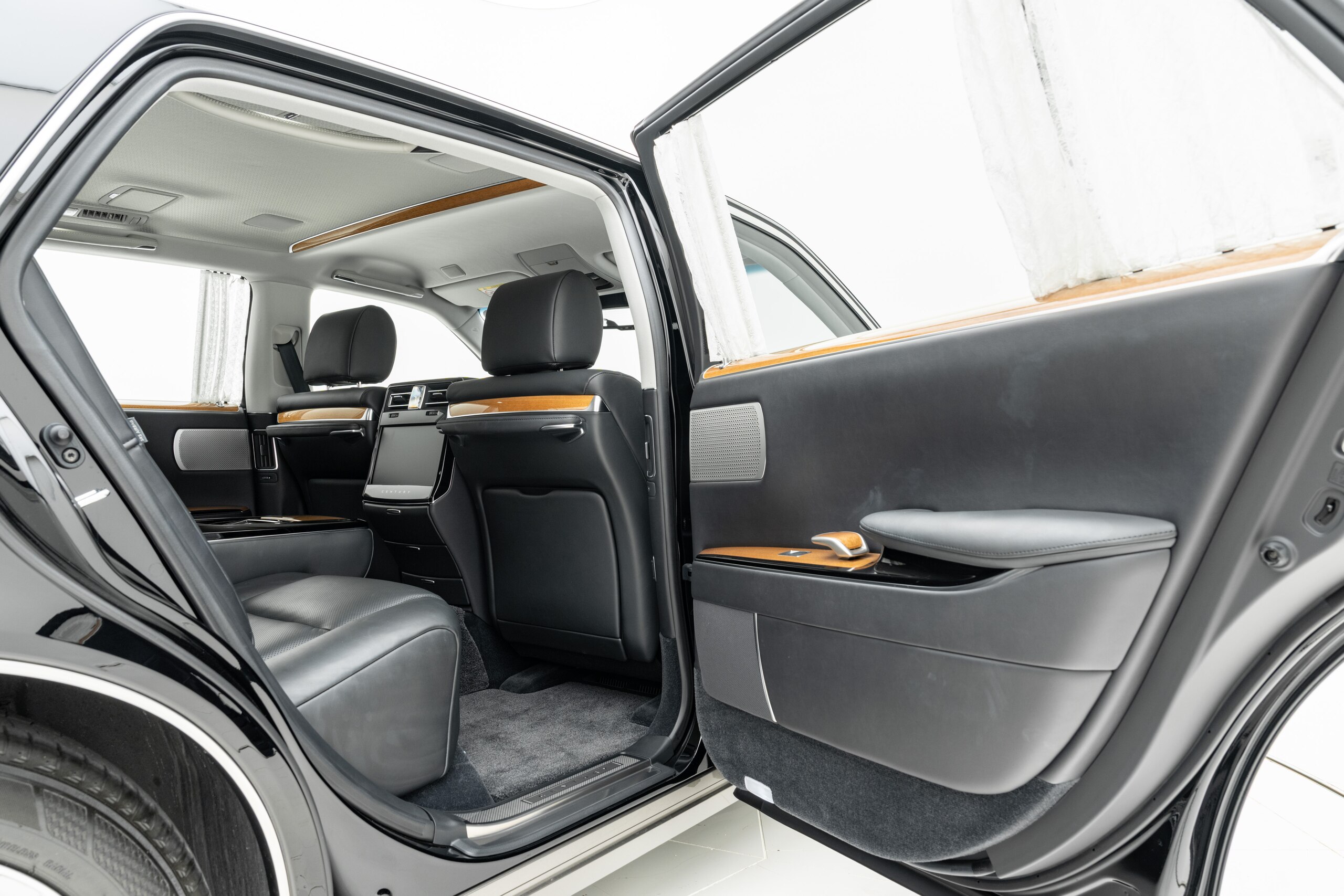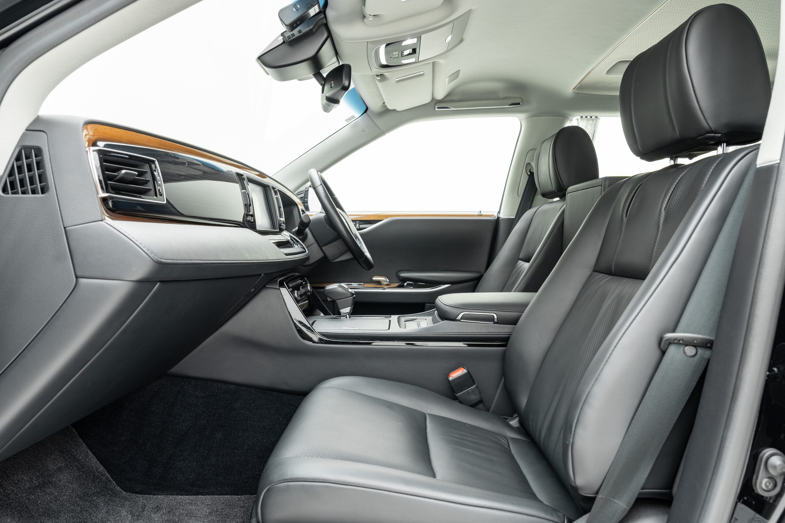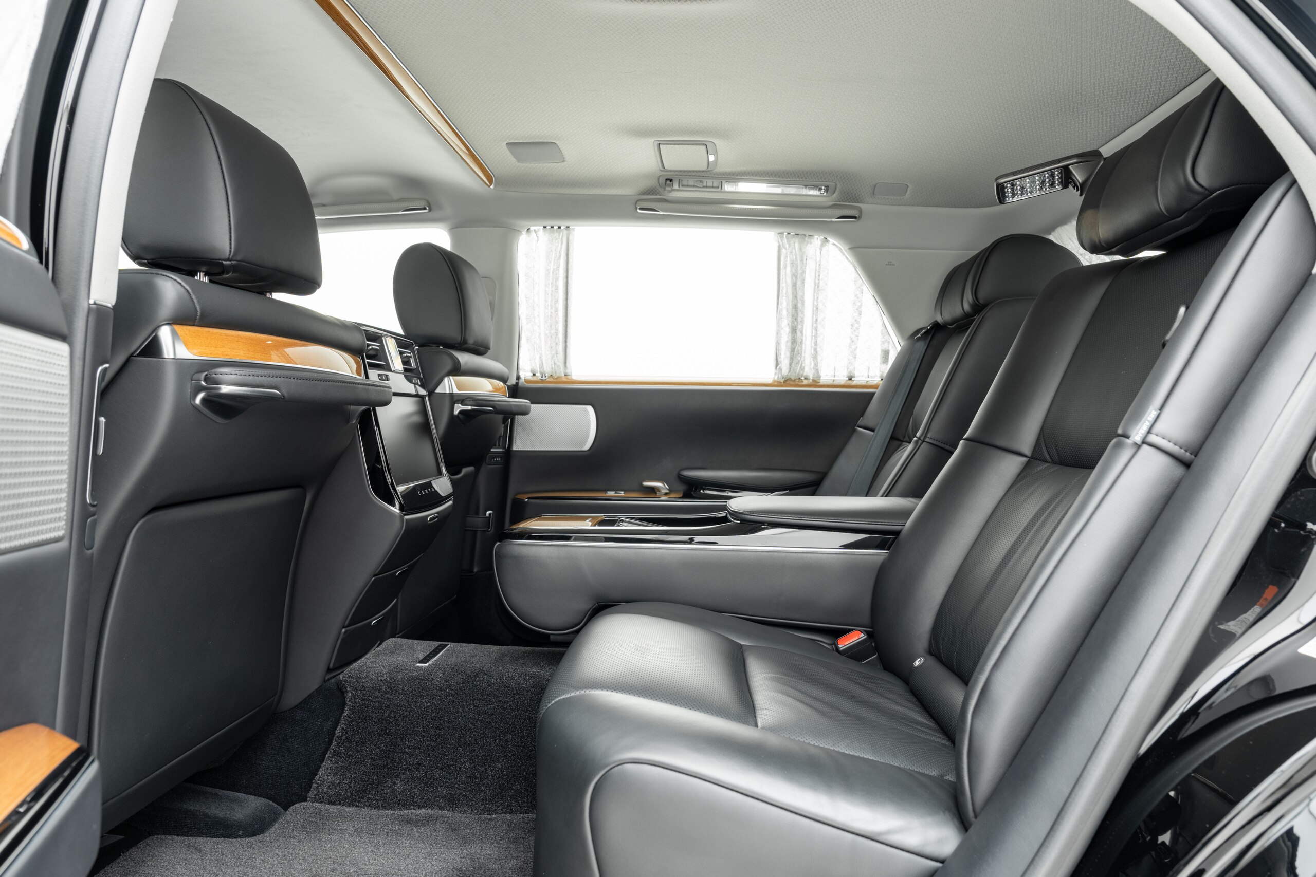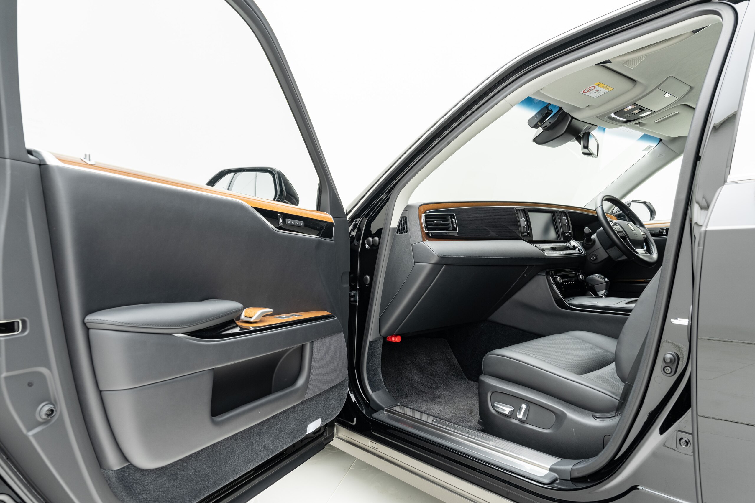 本革仕様(ブラック) 本杢加飾(ブラウン) リアドアカーテン&電動式バックウィンドウカーテン 純正フロアマット(プレステージタイプ) 純正18インチAW スペアタイヤ ドライブレコーダー(前後方) 神威エターナルブラック