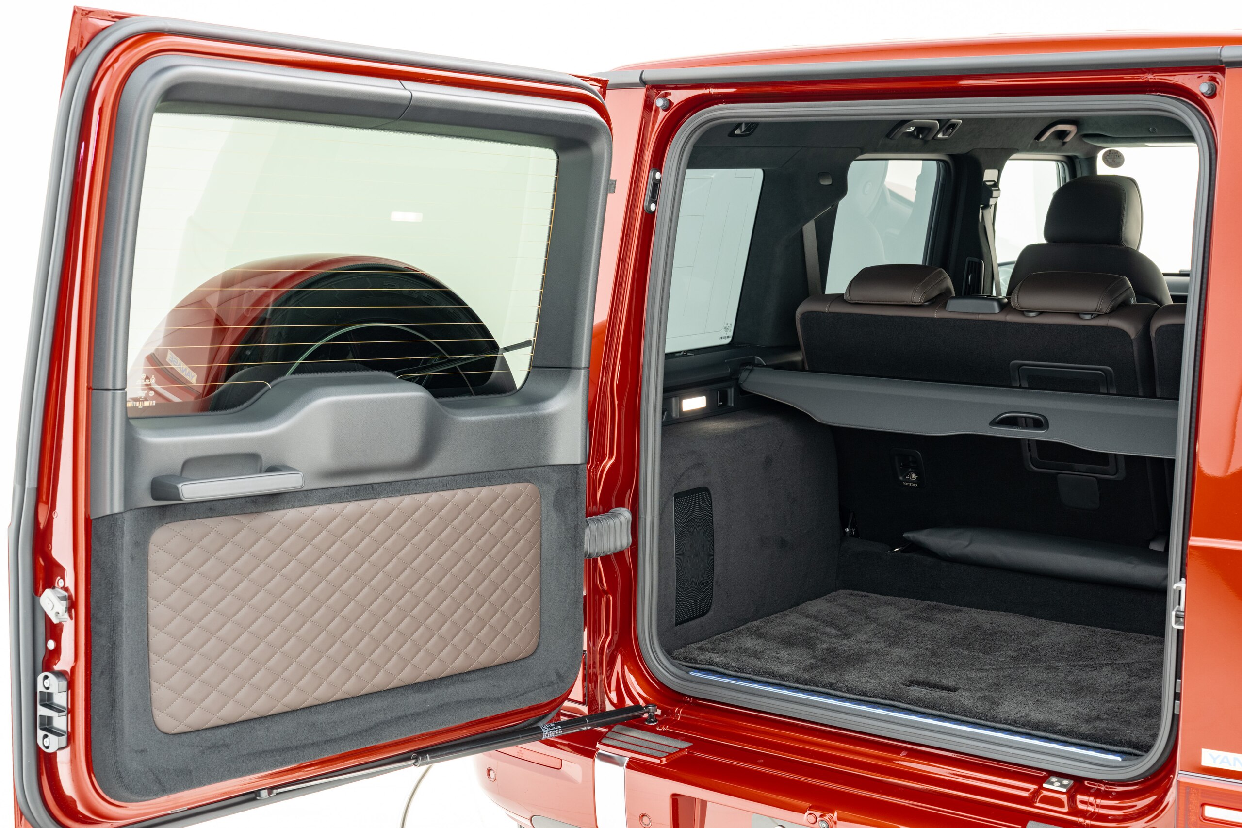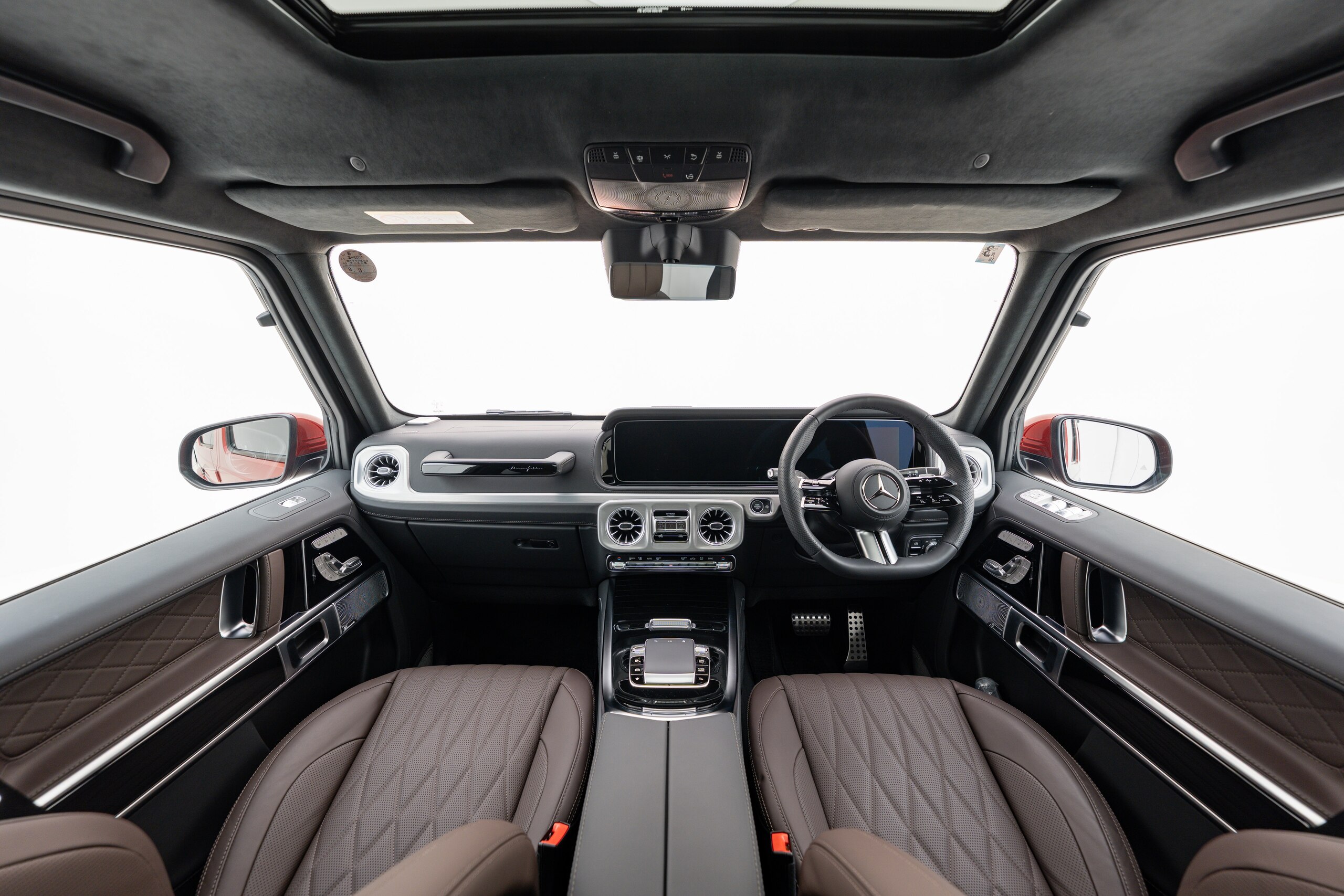 ヒヤシンスレッド(有償カラー) チタニウムグレーナッパレザー マヌファクトゥーアプログラムプラス プレミアムラゲッジカーペット 20インチAMGアルミホイール ブルメスター3Dサウンドシステム ヒヤシンスレッド